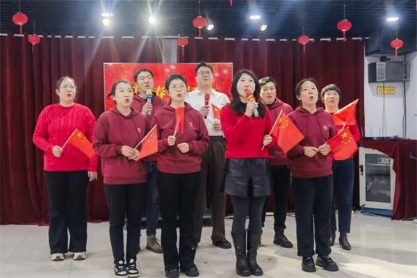 演出形式丰富多样,既有烘托节日气氛的合唱歌曲,也有表达爱国爱企深情的诗歌朗诵。